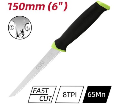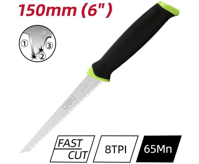 DELI Ножовка выкружная по гипсокартону DL580651 150мм, сталь 65Mn, 8TPI, шлифовка зубцов с 3-х сторон
