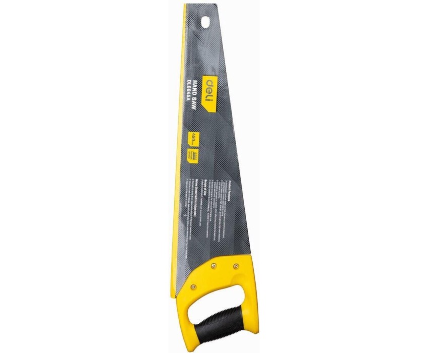DELI Ножовка по дереву DL6845A 450мм, сталь 65Mn, шлифовка зубцов с 3-х сторон, рукоять из двухкомпонентного противоударного пластика