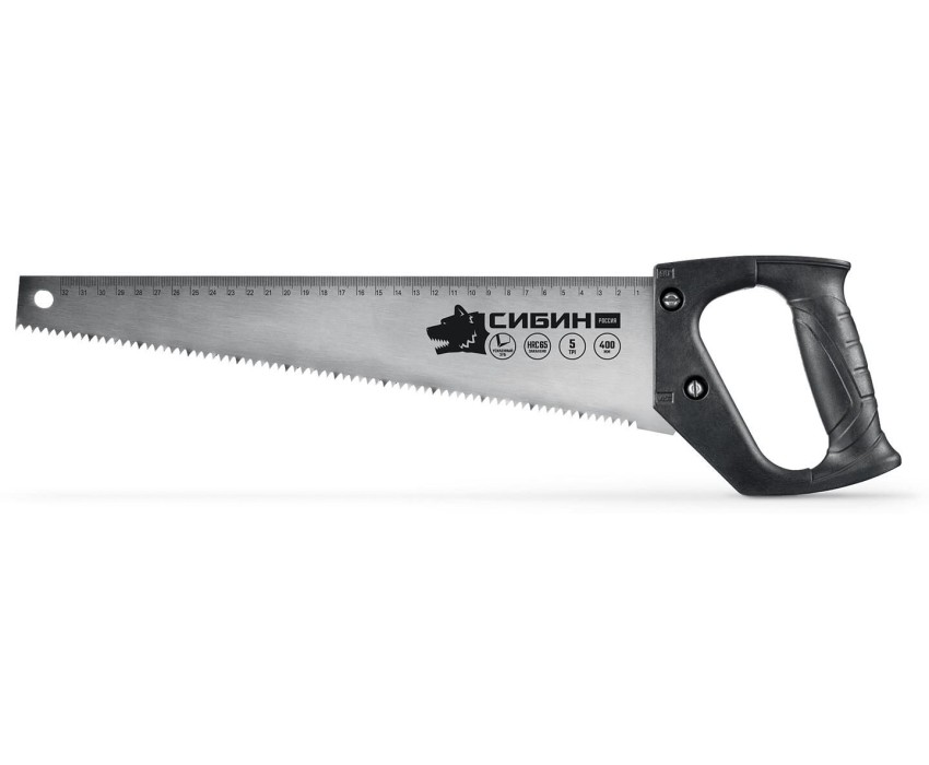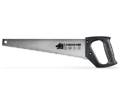 Ножовка СИБИН - надежность и качество. Предназначена для ровного и качественного распила древесины Преимущества Алмазная заточка зубьев, высокочастотная закалка зубьев, полотно из высокоуглеродистой стали, двухкомпонентная рукоятка, линейка, Использование Предназначена для пиления древесины среднего и крупного размеров