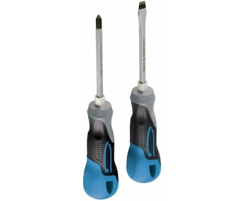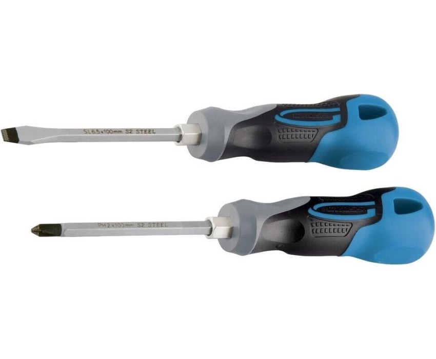Комбинированный набор Gross 12168 включает 2 отвертки из стали S2, с трехкомпонентными рукоятками, позволяющих осуществлять монтаж/демонтаж крепежных элементов типа Philips и Slotted. Он используется для решения профессиональных задач при проведении строительных, ремонтных и монтажных работ. Длина стержней отверток составляет 75-100 мм, поэтому набор оптимален для работы с легкодоступными резьбовыми соединениями.ПреимуществаИзносостойкость и долговечность — отвертки изготовлены из высококачественной инструментальной стали S2.Высокий ресурс — стержни отверток прошли индукционную закалку, их твердость составляет 56-58 HRC.Удобство использования — шлицы со специальными насечками и фосфатным покрытием надежно сцепляются с головкой крепежа, что снижает риск его повреждения.Защита от ржавчины — хромовое покрытие стержней предотвращает образование коррозии.Намагниченные наконечники — крепеж удобно направлять в отверстие одной рукой, т.к. он не спадает со шлица.Расширенный функционал — шестигранные выступы на рукоятк