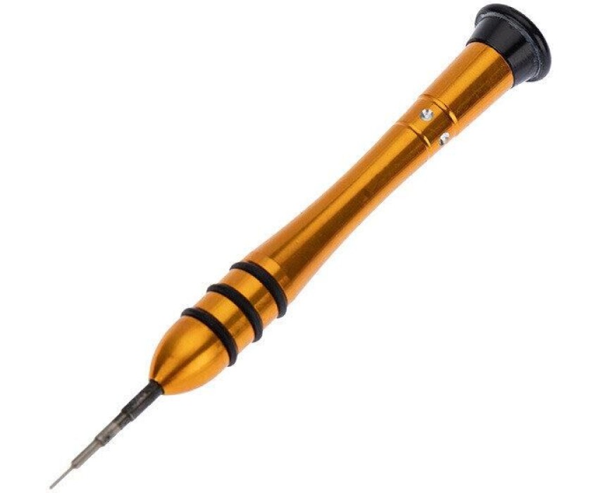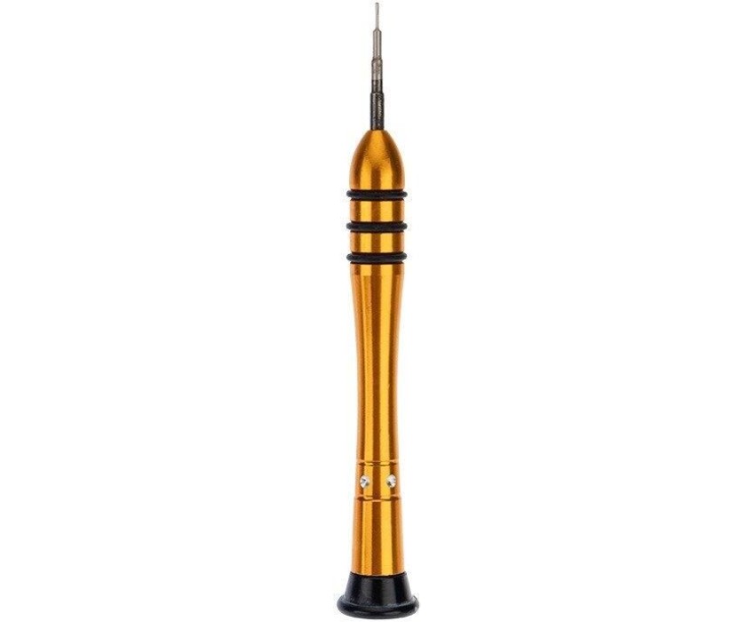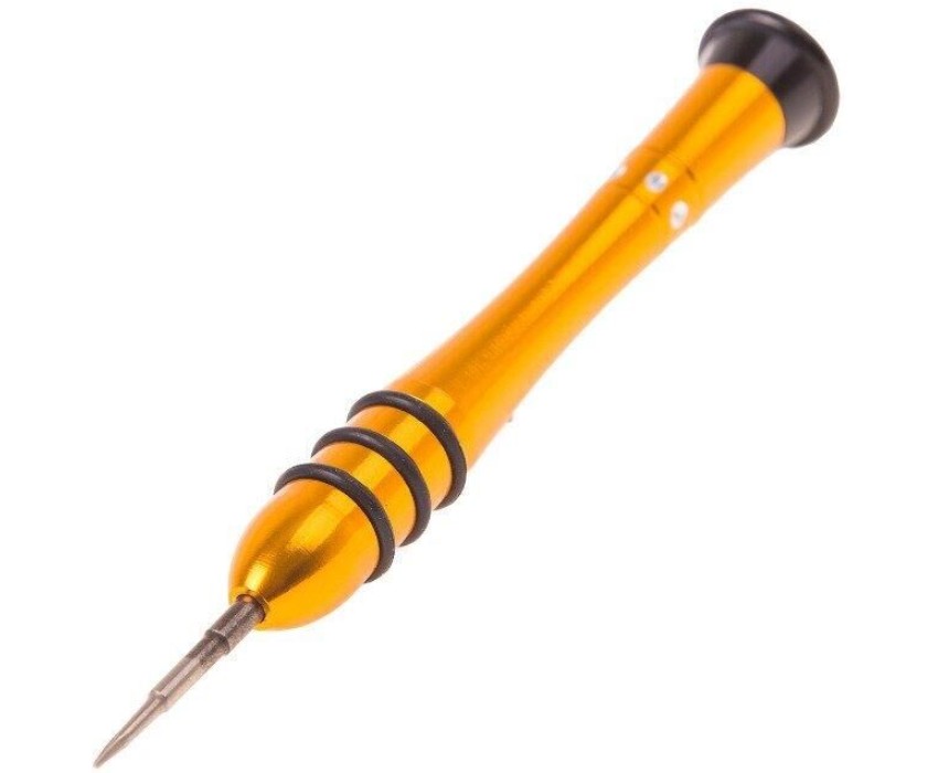 Отвертка Pentalobe (звездочка) REXANT предназначена для выполнения прецизионных работ в электронике и электромеханике, Рабочая часть инструмента выполнена из качественной стали, обладающей высокой прочностью, стойкостью к механическим повреждениям и образованию ржавчины. Двухкомпонентная рукоятка с резиновыми вставками не скользит в руке. Отвертка эргономичной формы обладает вращающейся шляпкой, которая позволяет производить прокручивание инструмента только пальцами без постоянного перемещения руки. Характеристики: Вид: Pentalobe 0.8 Материал рабочей части: хромованадиевая сталь Материал рукоятки: алюминий, резина