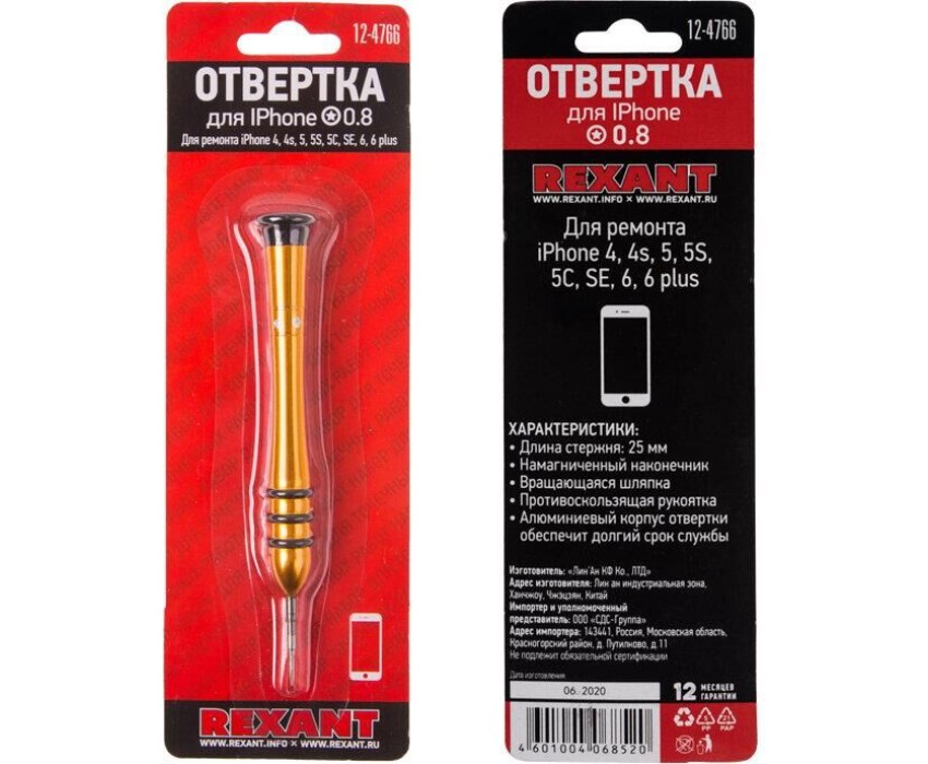 Отвертка REXANT (12-4766) Отвертка для телефонов Pentalobe 0,8 (звездочка)