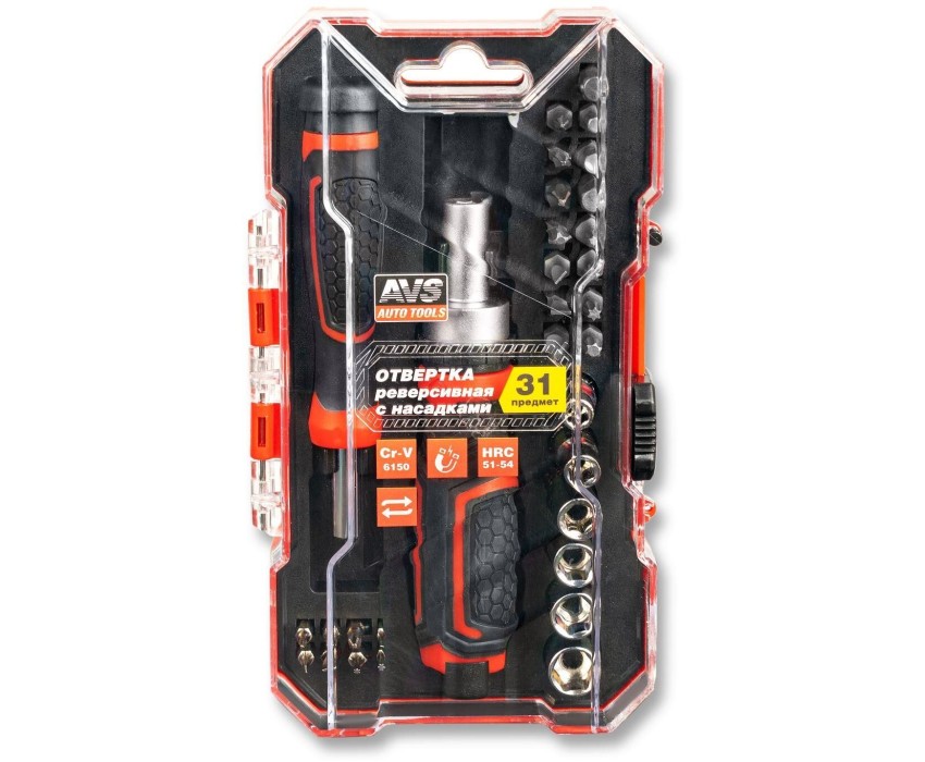 Отвертка AVS TOOLS ORS31 реверсивная с насадками (31 предмет)
