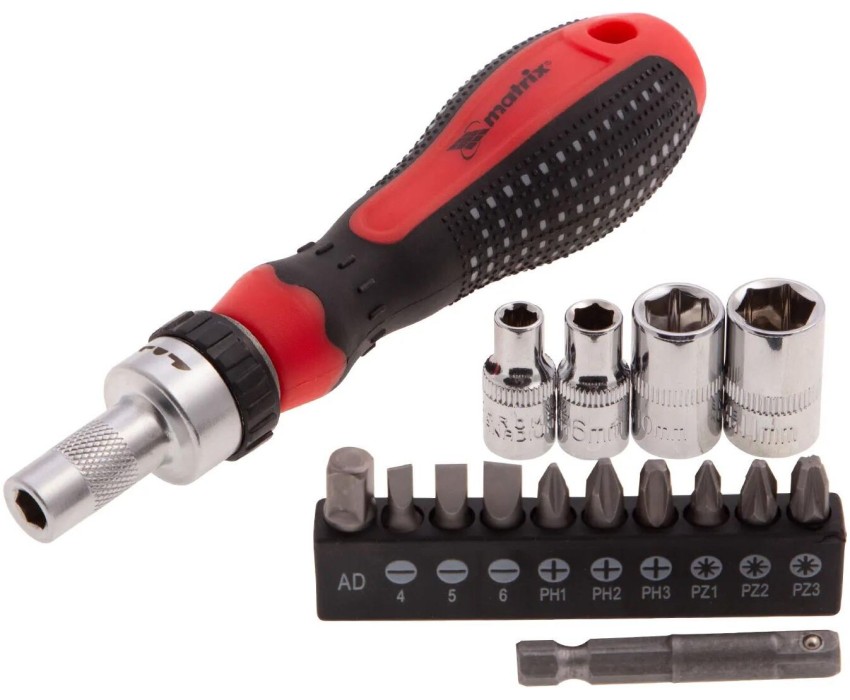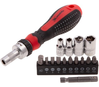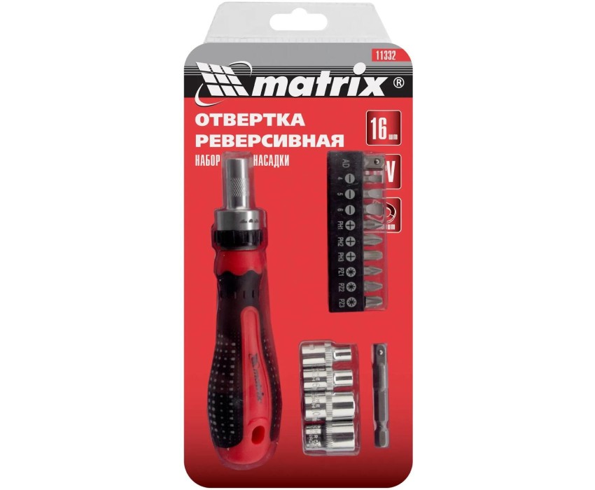 Отвертка MATRIX Отвёртка реверсивная с набором бит и насадок торцевых, CrV, 1/4", 16 шт.//