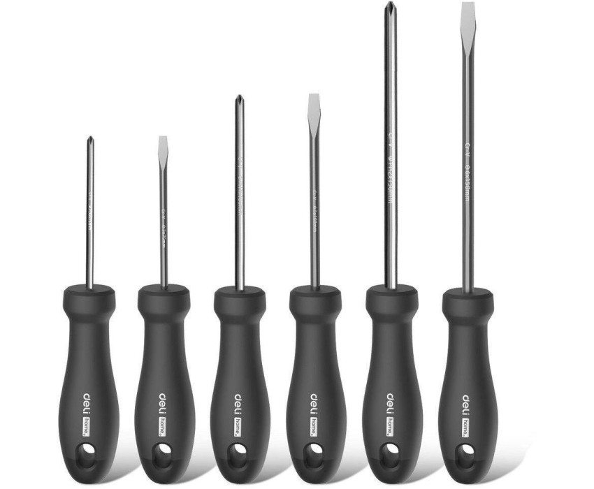 Набор отверток DELI Набор отверток Home Series Black HT1006 6шт SL3x75+SL5x100+SL6x150+PH0x75+PH1x100+PH2x150, эксклюзивный дизайн, рукоятка из высококачественного софттач пластика