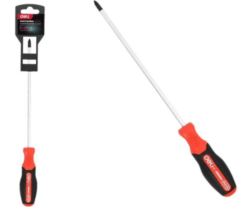 DELI Крестовая DL3460 PH2x100мм сталь S2, матовый стержень, двухкомпонентная прорезиненная рукоять