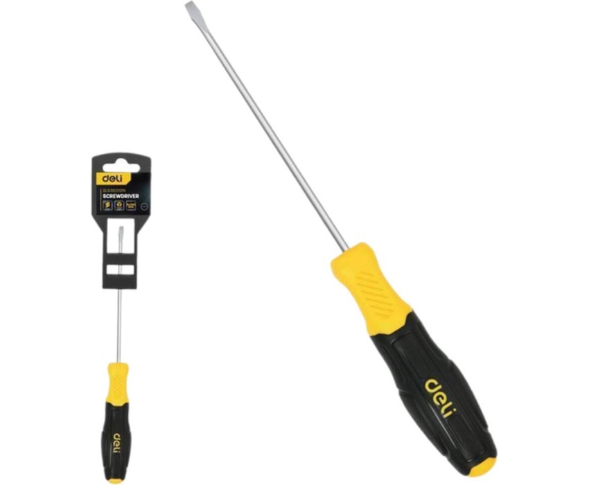 DELI Шлицевая отвертка DL6382001N 8х200мм сталь Cr-V, двухкомпонентная прорезиненная рукоять