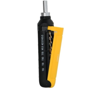 DELI Многофункциональная отвертка с трещоткой + набор из 12 бит DL240013D биты Cr-V (PH00, PH0, PH1, SL2, SL3, T6, T8, T10, T15, H1.5, H2, H3), трещотка 30 зубьев, противоскользящая рукоятка