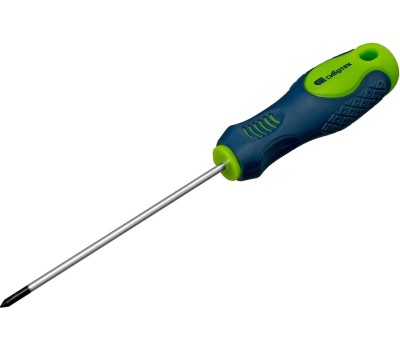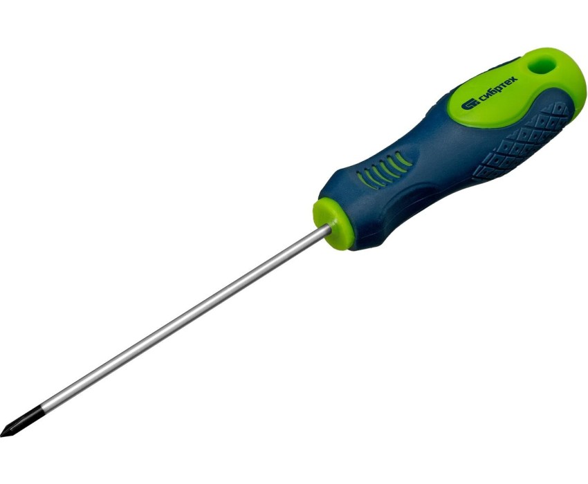Отвертка Сибртех 11837 типоразмера PH0 х 100 мм, из стали CrV, с двухкомпонентной рукояткой и крестовым шлицем, позволяет проводить монтаж/демонтаж крепежных элементов типа Phillips. Подходит для работы в углублениях. Полупрофессиональная отвертка поможет отремонтировать бытовую технику, повесить полки, собрать мебель и выполнить другие работы. Преимущества Прочность и долговечность — стержень изготовлен из хромованадиевой стали и закален до твердости 50-54 HRC. Удобная эксплуатация — фосфатированная рабочая часть обеспечивает улучшенное сцепление с головкой крепежа. Быстрый поиск нужной отвертки — на рукоятке имеется обозначение типа шлица и длины стержня. Комфортная работа без ощущения усталости — двухкомпонентная рукоятка с ромбовидными насечками и подпальцевыми выемками не выскальзывает из ладони.