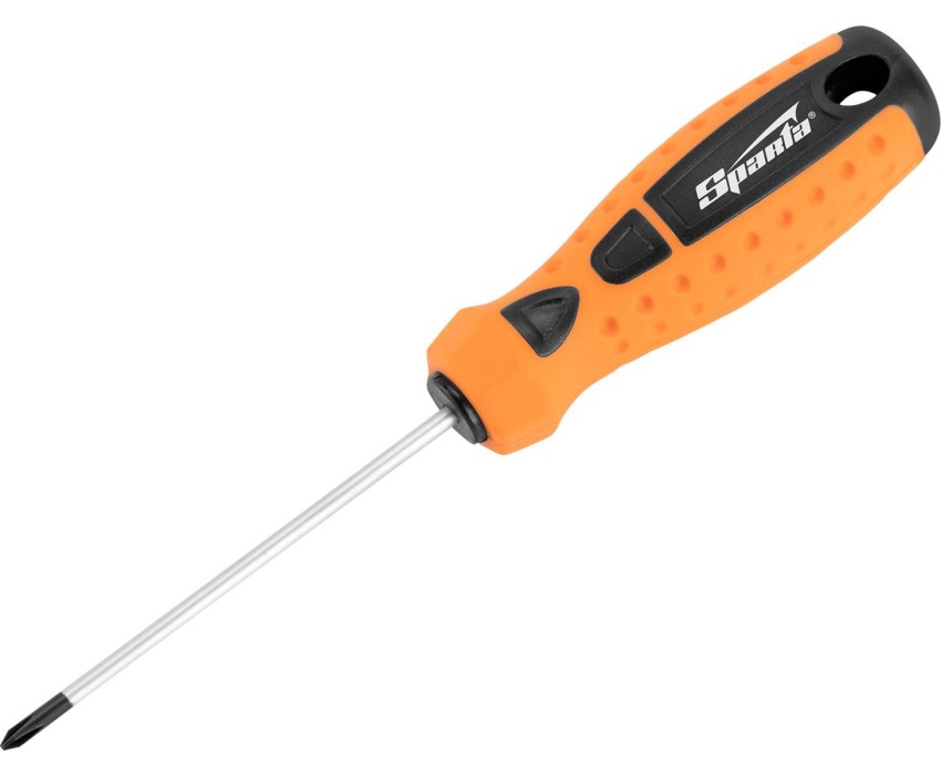 Отвертка Sparta «Point» 11773 из стали CrV, с 2-х компонентной рукояткой, подходит для монтажа/демонтажа крестового крепежа PH0. Она поможет мастерам провести мелкие бытовые работы в доме или автомастерской. Отвертка оснащена стержнем длиной 80 мм для работы на поверхностях и в углублениях. Преимущества Износостойкость — стержень выполнен из углеродистой стали. Улучшенное сцепление с крепежом — рабочая часть фосфатирована. Удобство работы — на рукоятке имеется маркировка с типом шлица и длины стержня отвертки. Двухкомпонентная эргономичная рукоятка — увеличенная передача крутящего момента позволяет добиться снижения нагрузки на запястье.