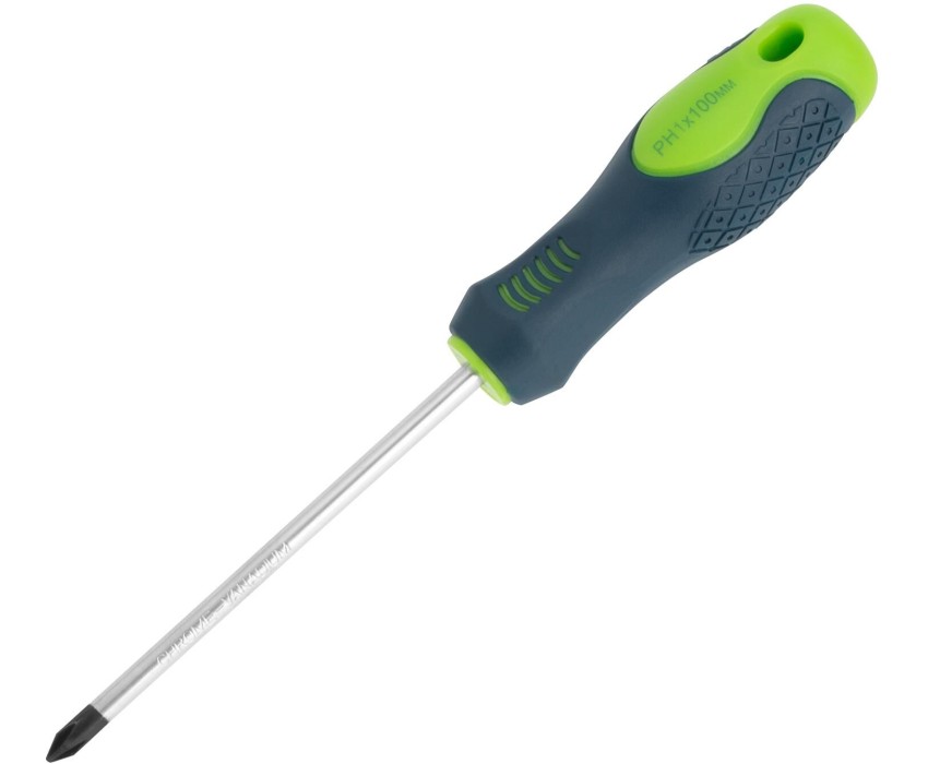 Отвертка Сибртех 11841 типоразмера PH1 х 100 мм, из стали CrV, с двухкомпонентной рукояткой и крестовым шлицем, позволяет проводить монтаж/демонтаж крепежных элементов типа Phillips. Подходит для работы в углублениях. Полупрофессиональная отвертка поможет отремонтировать бытовую технику, повесить полки, собрать мебель и выполнить другие работы. Преимущества Прочность и долговечность — стержень изготовлен из хромованадиевой стали и закален до твердости 50-54 HRC. Удобная эксплуатация — фосфатированная рабочая часть обеспечивает улучшенное сцепление с головкой крепежа. Быстрый поиск нужной отвертки — на рукоятке имеется обозначение типа шлица и длины стержня. Комфортная работа без ощущения усталости — двухкомпонентная рукоятка с ромбовидными насечками и подпальцевыми выемками не выскальзывает из ладони.