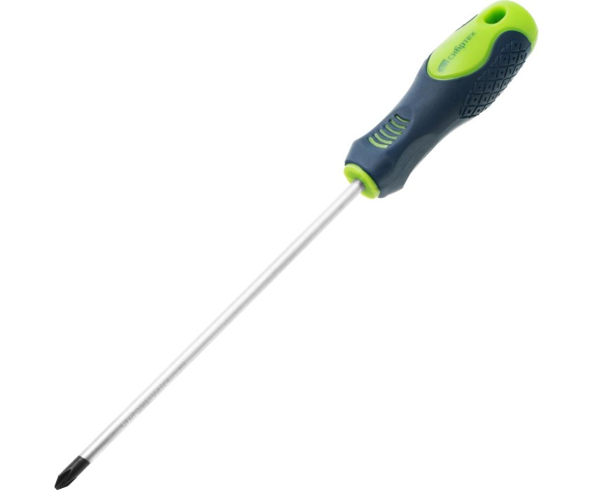 Отвертка Сибртех 11843 типоразмера PH1 х 150 мм, из стали CrV, с двухкомпонентной рукояткой и крестовым шлицем, позволяет проводить монтаж/демонтаж крепежных элементов типа Phillips. Подходит для работы в углублениях. Полупрофессиональная отвертка поможет отремонтировать бытовую технику, повесить полки, собрать мебель и выполнить другие работы. Преимущества Прочность и долговечность — стержень изготовлен из хромованадиевой стали и закален до твердости 50-54 HRC. Удобная эксплуатация — фосфатированная рабочая часть обеспечивает улучшенное сцепление с головкой крепежа. Быстрый поиск нужной отвертки — на рукоятке имеется обозначение типа шлица и длины стержня. Комфортная работа без ощущения усталости — двухкомпонентная рукоятка с ромбовидными насечками и подпальцевыми выемками не выскальзывает из ладони.