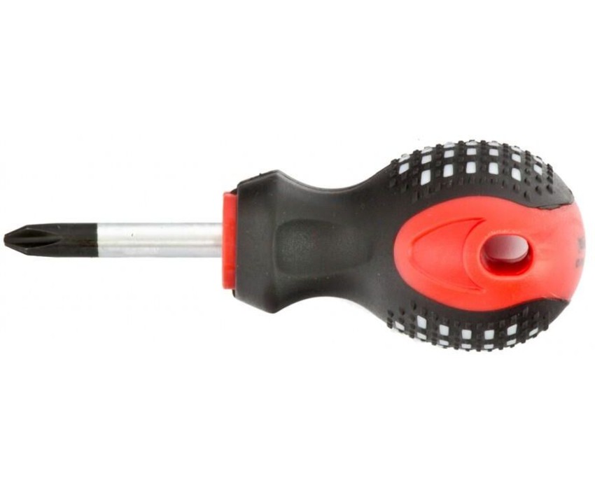 Отвертка Matrix Fusion 11431, PH2 х 38 мм, из стали CrV, с 3-х компонентной рукояткой «anti slip», предназначена для работ с резьбовым крепежом, имеющим крестообразный шлиц Phillips. Профессиональная отвертка пригодится при выполнении строительных, монтажных и ремонтных работ, а также при сборке мебели и ремонте автомобиля. Небольшая длина стержня 38 мм позволяет проводить работы в труднодоступных местах и ограниченном пространстве. Преимущества Стержень и жало выполнены из износостойкой легированной стали CrV твердостью 50-52 HRC, что обеспечивает долгий срок службы отвертки. Намагниченный наконечник позволяет зафиксировать крепеж и направлять отвертку одной рукой, а другой придерживать закрепляемую деталь. Фосфатированный шлиц обеспечивает улучшенное сцепление с крепежом для удобства работы. Трехкомпонентная рукоятка «anti slip» с подпальцевыми выемками и специальными секциями обеспечивает комфортный и надежный хват без проскальзывания.