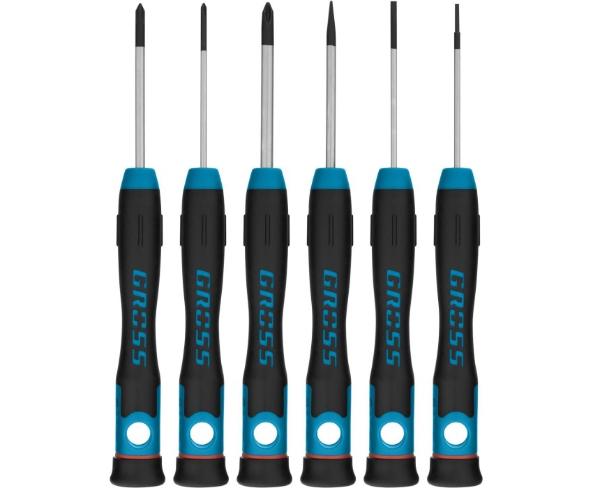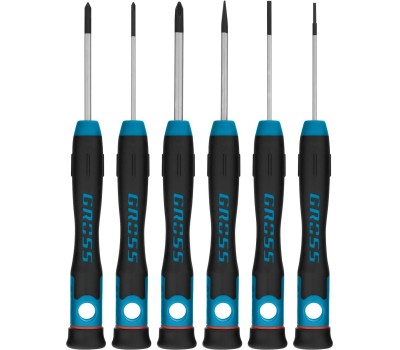 GROSS Набор отверток для точной механики, CrMo, двухкомпонентные рукоятки, 6 шт, пластиковый бокс 13347