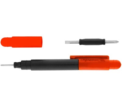 Набор Matrix 11598 из стали CrV включает в себя ручку-отвертку с комбинированными битами PH0, PH000, SL1.5 и SL3 для точных работ с крепежными элементами типа Phillips и Slotted. Инструменты незаменимы при ремонтном обслуживании электротехники, очков, часов, мелких бытовых приборов и т.д. Преимущества В комплект входят 2 прочных и износостойких двухсторонних стержня из хромованадиевой стали, закаленной до твердости 52-56 HRC. Компактная отвертка пригодится профессиональным мастерам, которым необходимо всегда иметь инструмент при себе. Специальная клипса позволяет с удобством носить отвертку в кармане.