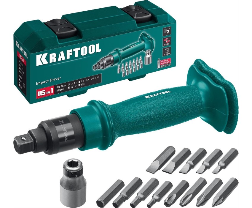 KRAFTOOL ID-15, 15 предм., ударно-поворотная отвертка (25550-Н10)