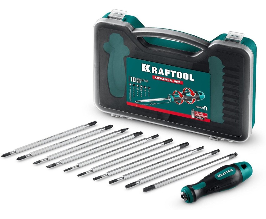 KRAFTOOL Double 20, 20 шт, набор: отвертка с переставными стержнями (25817)