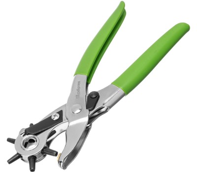 Просекатель (дырокол) для кожи и картона Сибртех 18360 позволяет проделывать отверстия различного диаметра: 2,5, 3,0, 3,5, 4,0, 4,5, 5,0 мм. С его помощью можно проколоть неплотные изделия толщиной до 3 мм. Это идеальный инструмент для работы в мастерской и дома. Преимущества Прочность и надежность просекателя достигается благодаря качественным материалам изготовления — пробойники выполнены из стали 40 Cr (40 X), а наковальня — из латуни. Никелевое покрытие защищает просекатель от образования коррозии. Обливные рукоятки удобно лежат в руке, что повышает комфорт работы.