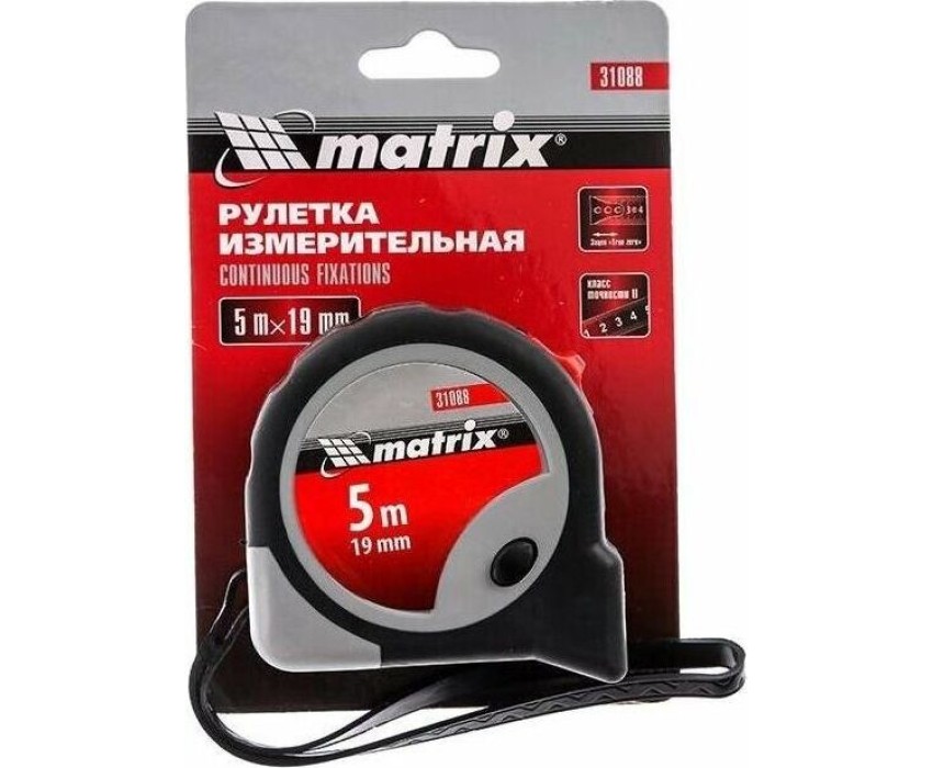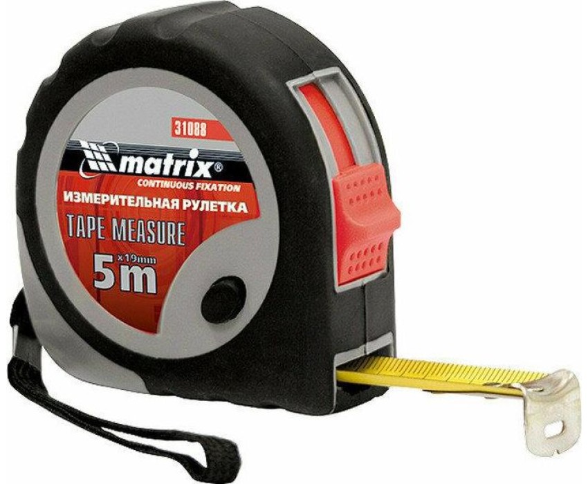 Рулетки MATRIX Рулетка Continuous fixation, 5 м х 19 мм, двухкомпонентный корпус, плавная фиксация 31088