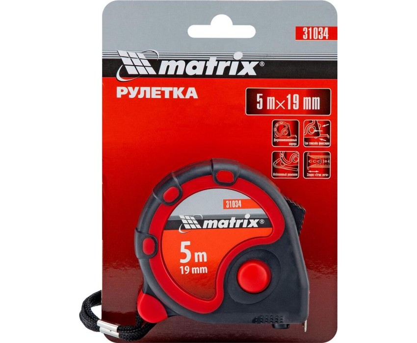 Рулетки MATRIX Рулетка Status 3 fixations, 5 м х 19 мм, двухкомпонентный корпус, 3 фиксации ленты 31034
