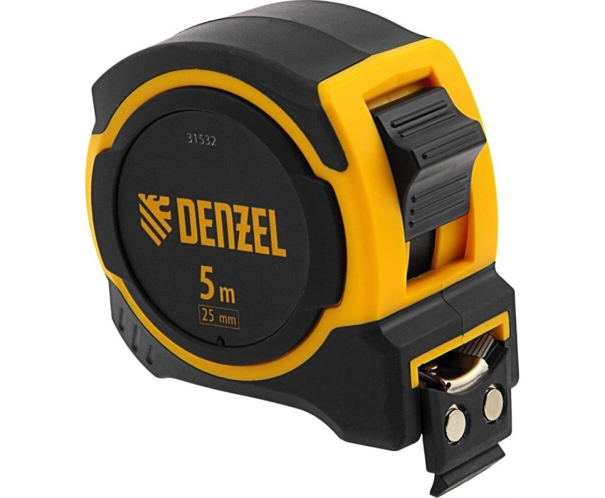 Рулетка DENZEL Рулетка 5м х 25мм, двухкомп. корпус, магнитный обрезиненный зацеп 31532