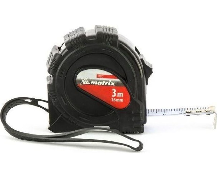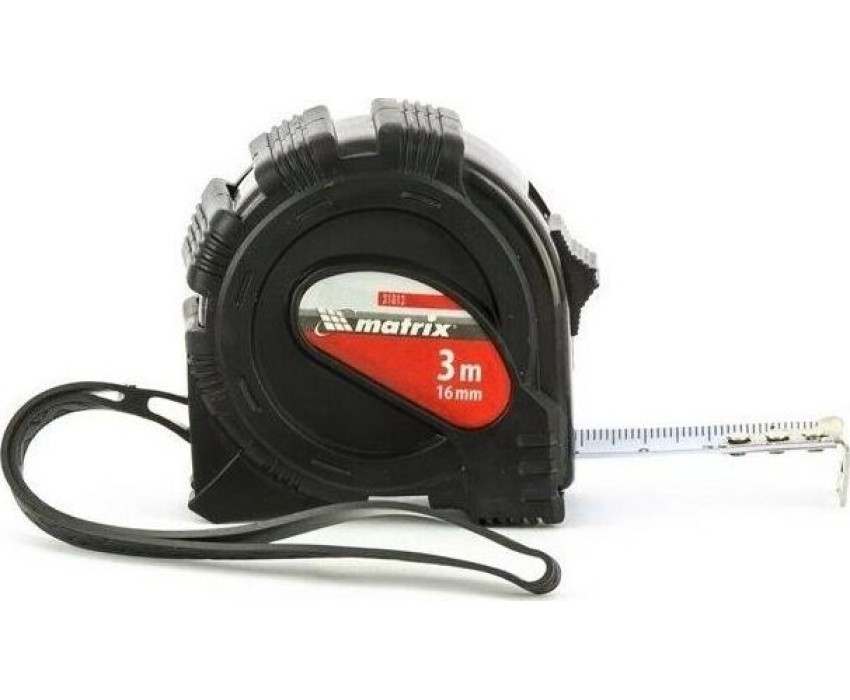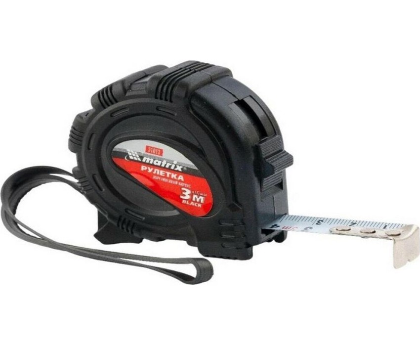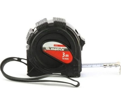 Рулетка Matrix Black 31013, 3 м х 16 мм, в обрезиненном корпусе, будет полезна как строителям, так и домашним мастерам. Используется для определения размеров и расстояний, имеет цену деления 1 мм и класс точности 2. Корпус инструмента защищен резиновым кожухом, что уменьшает риск поломки в случае падения или удара. Зацеп надежно закреплен на ленте тремя заклепками, поэтому он не отвалится даже после длительного использования.ПреимуществаКорпус рулетки устойчив к механическим повреждениям, т.к. изготовлен из ударопрочного ABS-пластика.Стальная лента защищена от царапин и истирания, поскольку на нее нанесено полимерное покрытие.Измерительное полотно фиксируется в вытянутом положении при помощи стопора.Если во время работы нужно освободить руки, инструмент можно закрепить на поясе при помощи металлической клипсы.Рулетку можно повесить на запястье за ремешок.