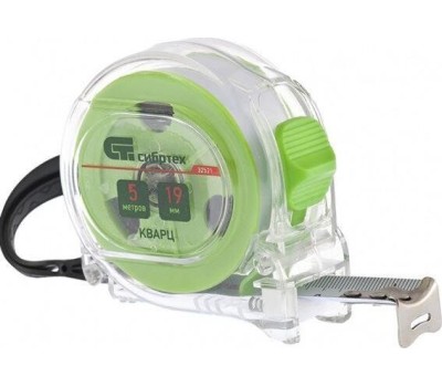 Рулетка СИБРТЕХ Рулетка Кварц,прозрачный корпус,амортизатор,5 м х 19 мм 32521