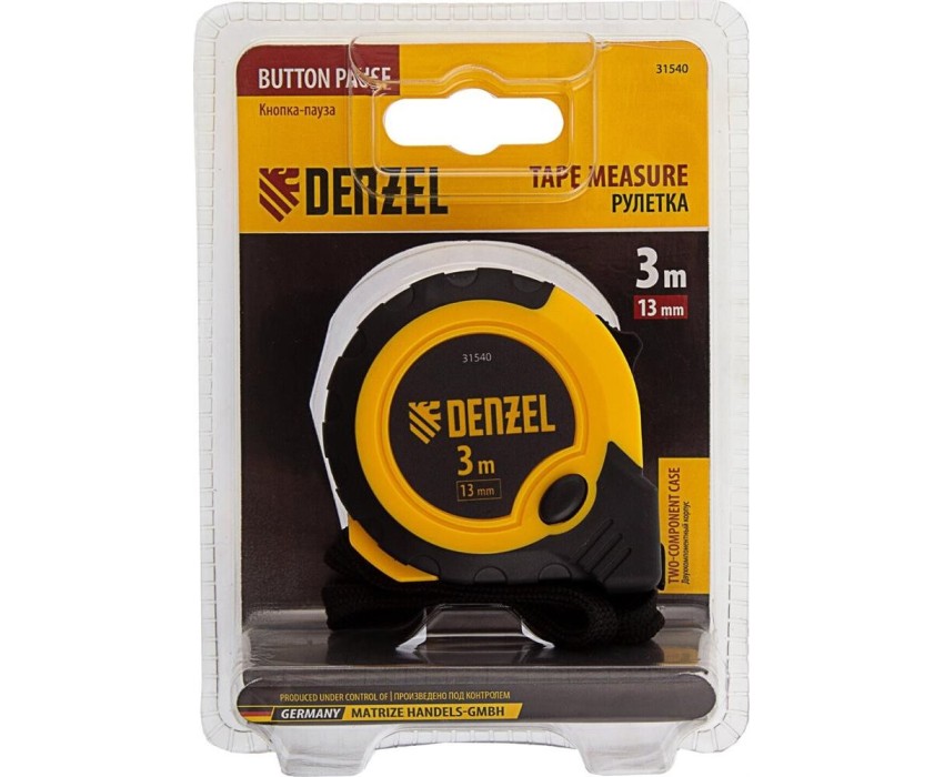 Рулетка DENZEL Рулетка 3м х 13мм, двухкомп. корпус, кнопка-пауза 31540