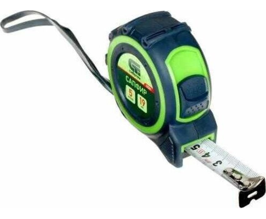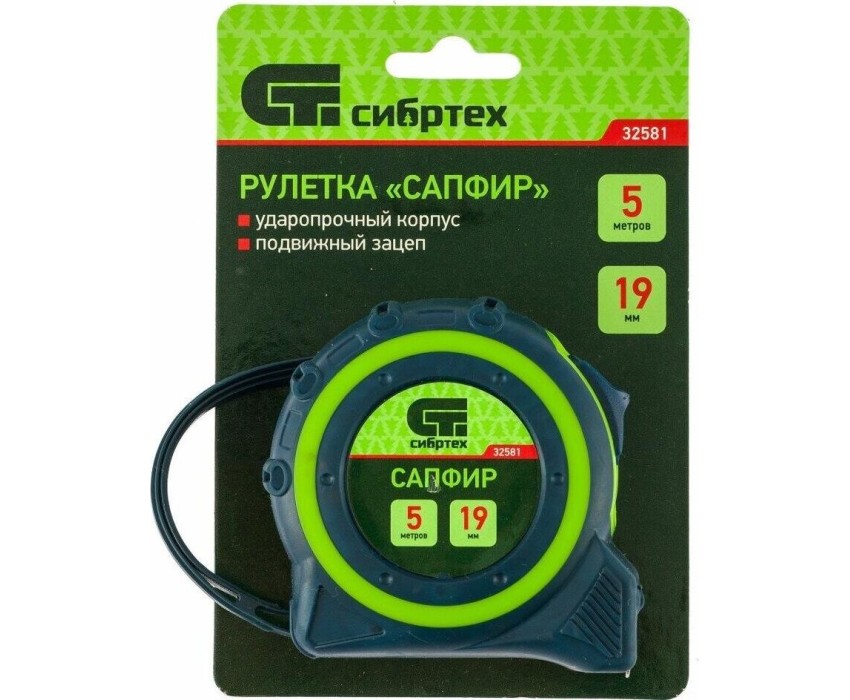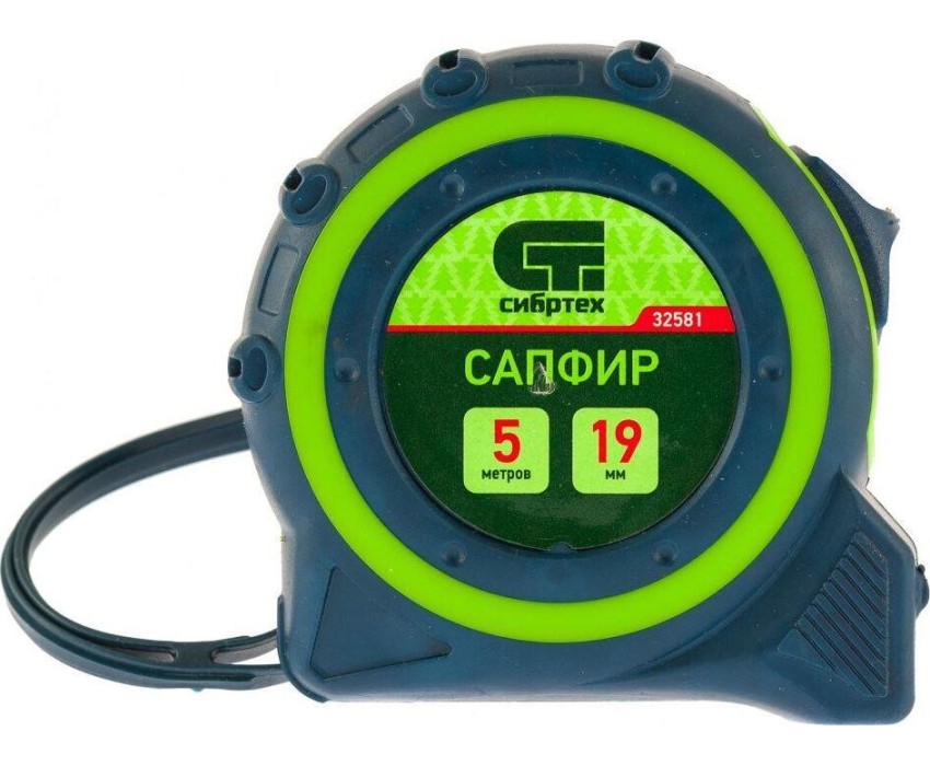 Рулетка Сибртех Сапфир 32581 с лентой 5 м х 19 мм выполнена в двухкомпонентном корпусе. Инструмент поможет определить длину заготовок, материалов, конструкций и т.д. Будет полезна дома, в гараже, мастерской, при проведении монтажных и ремонтных работ. Зацеп с отверстием позволяет использовать рулетку в качестве циркуля.ПреимуществаДвухкомпонентный корпус отличается ударопрочностью и надежностью, т.к. выполнен из ABS-пластика с резиновыми вставками.Небольшая ширина полотна 19 мм позволяет работать в труднодоступных местах.Подвижный зацеп обеспечивает точность работы, компенсируя его толщину.Благодаря ремешку и клипсе рулетку можно подвешивать на запястье или пояс для удобства работы.