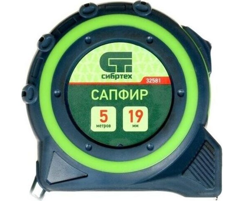 Рулетка СИБРТЕХ Рулетка Сапфир,двухкомпонентный корпус,5 м х 19 мм 32581