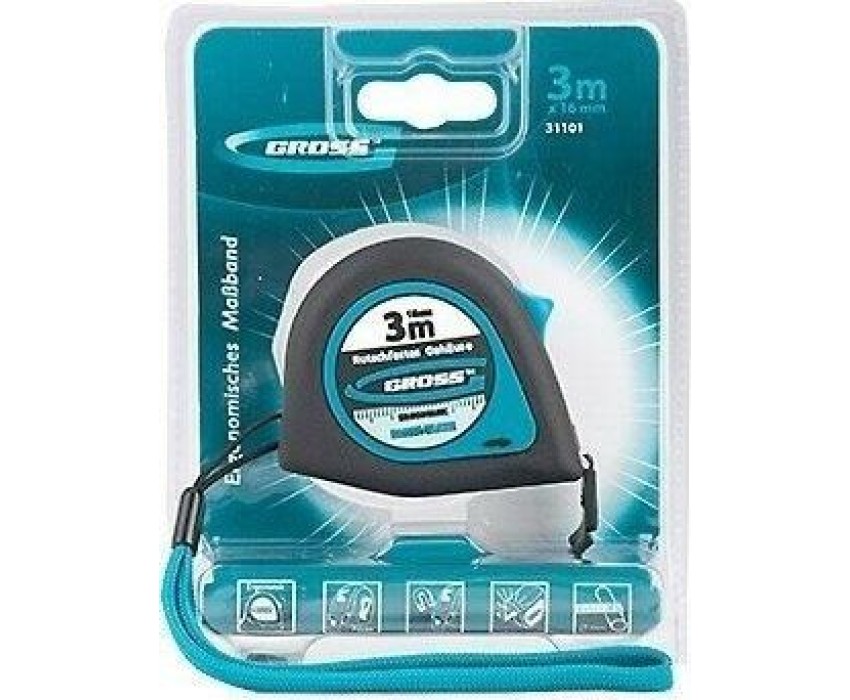 Рулетка GROSS Рулетка "Ergonomisch",8 м x 25 мм,магнитный обрезиненный зацеп 31104