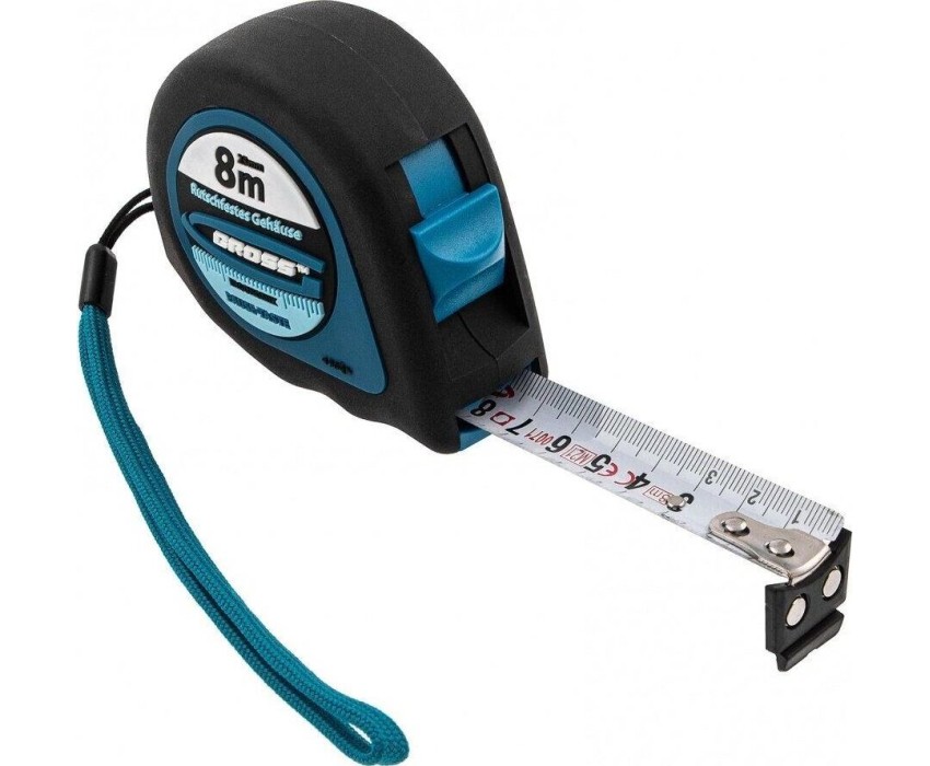 Рулетка Gross «Ergonomisch» 31104 с лентой 8 м х 25 мм и магнитным обрезиненным зацепом пригодится в хозяйстве и на строительной площадке для проведения измерительных работ. Этот карманный инструмент удобно брать с собой на выездные работы. За счет обрезиненного магнитного зацепа полотно можно зафиксировать на металлических поверхностях, также возможно измерение конструкций круглой и изогнутой формы, например, труб.ПреимуществаВысокая точность измерений от нуля — плавающий зацеп позволяет компенсировать погрешность от его толщины.Удобное проведение замеров — встроенный фиксатор позволяет удерживать полотно на нужной длине.Комфортная эксплуатация — за счет прорезиненного корпуса рулетка не проскальзывает в руке.Надежность — корпус из прочного ABS-пластика выдерживает механические воздействия и падения с небольшой высоты.Долговечность — окрашенное измерительное полотно отличается стойкостью к истиранию.Ремешок на запястье — рулетку можно повесить на руку, чтобы случайно не выронить.