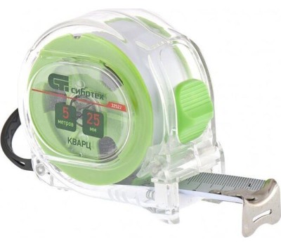 Рулетка СИБРТЕХ Рулетка Кварц,прозрачный корпус,амортизатор,5 м х 25 мм 32522