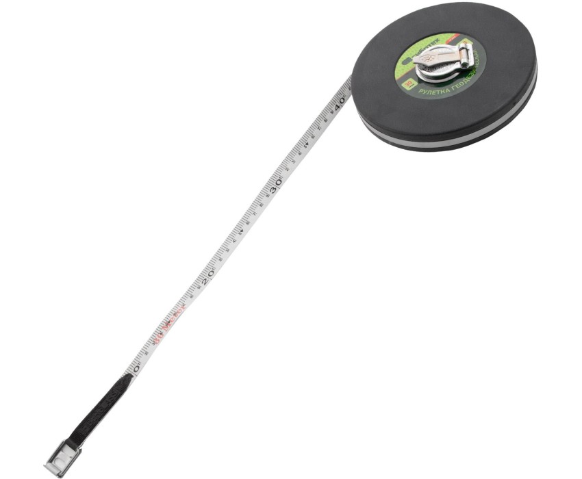 Геодезическая рулетка Сибртех 31262 с измерительным полотном длиной 30 м и шириной 13 мм, в закрытом корпусе, с фибергласовой лентой, — измерительный инструмент для определения расстояний и проведения замеров различных объектов. Рулетка пригодится при выполнении строительных и ремонтных работ, обмеров садовых участков, а также при формировании ландшафтов. Преимущества Повышенная стойкость к механическим воздействиям — закрытый корпус выполнен из прочного ABS-пластика и усилен стальной лентой. Долговечность — фибергласовое измерительное полотно не подвержено коррозии и устойчиво к повреждениям. Удобное проведение измерений — складной стальной зацеп фиксирует конец ленты на объекте. Быстрый возврат ленты — возвратный механизм открывается при помощи кнопки.