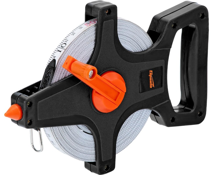 Геодезическая рулетка Sparta 314405 в открытом корпусе, с лентой из ПВХ шириной 12,5 мм, — измерительный инструмент для определения расстояний и размеров объектов до 50 м. Заостренный наконечник для фиксации в почве и кольцо-зацеп позволяют выполнять длинномерные измерения в одиночку. Рулетка удобна для замеров рельефных поверхностей, используется во время строительства, геодезических обследований, инвентаризации земельных участков, формирования ландшафтного дизайна. Преимущества Долговечность — измерительное полотно из ПВХ не подвержено коррозии. Быстрый возврат полотна — производитель предусмотрел удлиненную ручку возвратного механизма. Комфортное перемещение — благодаря специальной рукоятке инструмент удобно держать в руке.