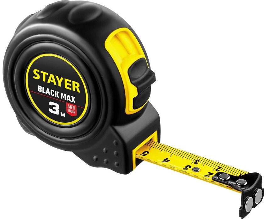 STAYER BlackMax, 3 м х 16 мм, рулетка с двумя фиксаторами, Professional (3410-03)