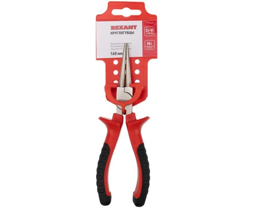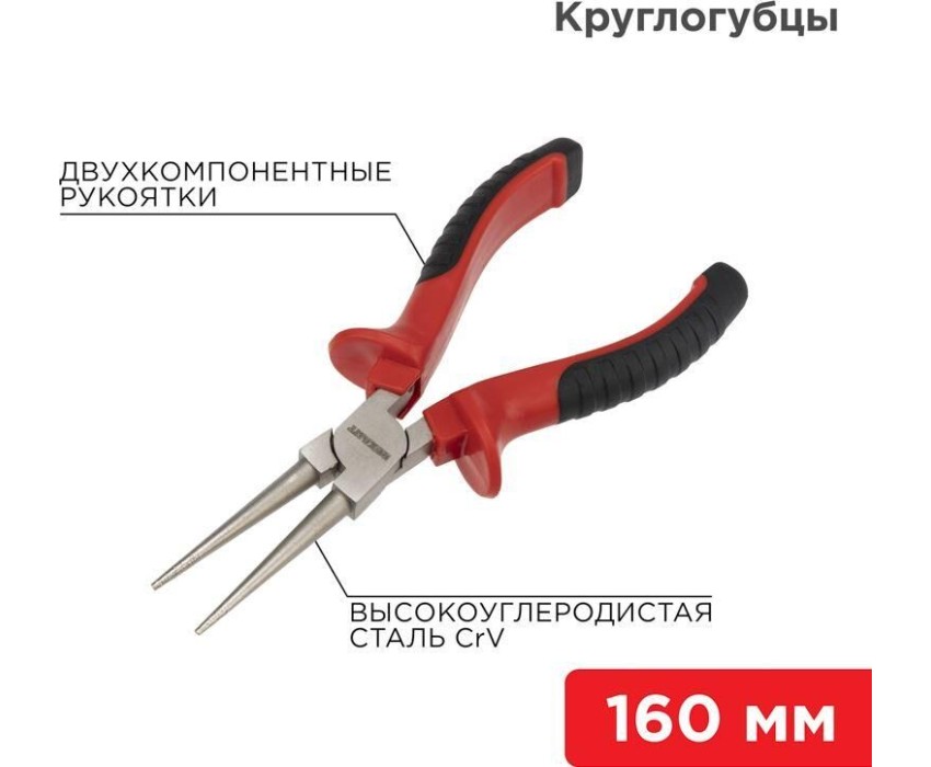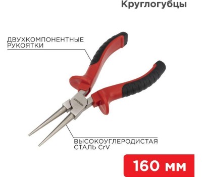 Круглогубцы REXANT (12-4623) Круглогубцы 160мм никелированные, двухкомпонентные рукоятки