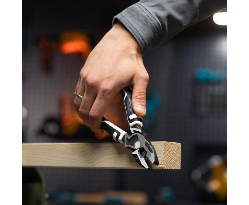 Комбинированные плоскогубцы Matrix PRO 17061 длиной 210 мм, с усиленной системой, используются для фиксации и удерживания плоских деталей, а также разрезания проволоки или проводов. Шарнир смещен к режущим кромкам, что позволяет передавать большее усилие и увеличивает эффективность реза. Плоскогубцы предназначены для профессионального применения в сфере строительства и ремонта.ПреимуществаВысокая прочность — рабочие части изготовлены из хромованадиевой стали методом ковки.Износостойкость — режущие поверхности закалены высокочастотными токами до твердости 56-62 HRC.Устойчивость к коррозии — стальные части оксидированы для защиты от разрушения.Эргономичность — между рукоятками и шарниром имеются дополнительные зоны для захвата и удержания деталей.Комфортная работа — на двухкомпонентных рукоятках имеются зоны с «шагренью», обеспечивающие надежный хват.