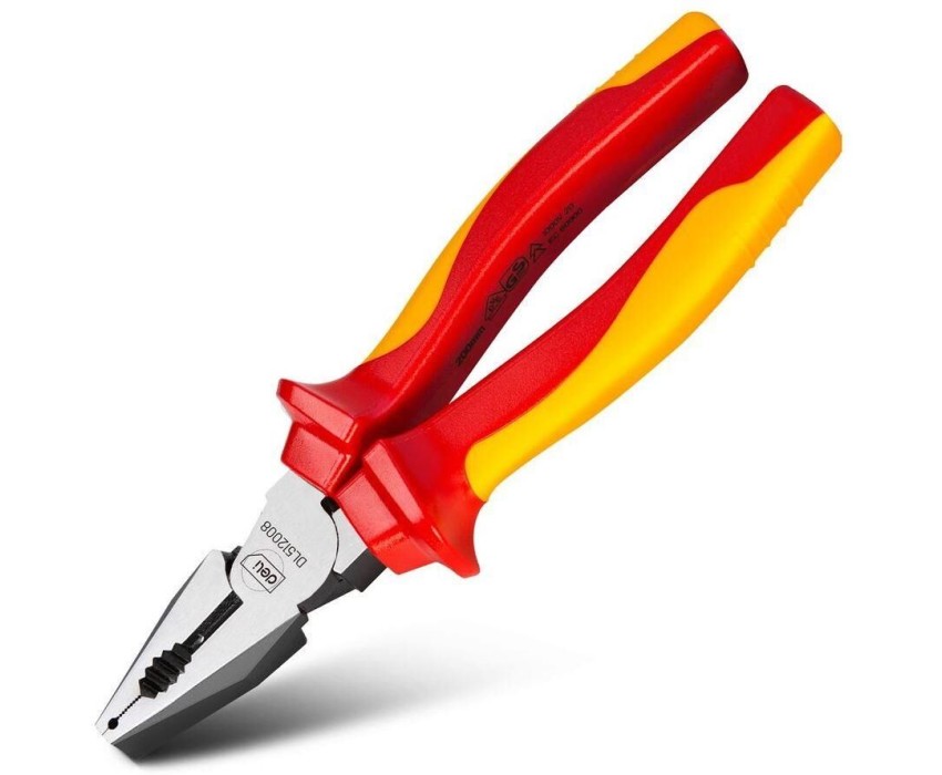 Плоскогубцы DELI Диэлектрические комбинированные плоскогубцы DL512008 200мм, сталь Cr-V, сертификат VDE для работ под напряжением до 1000 В