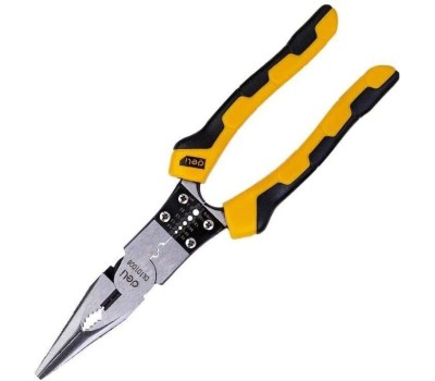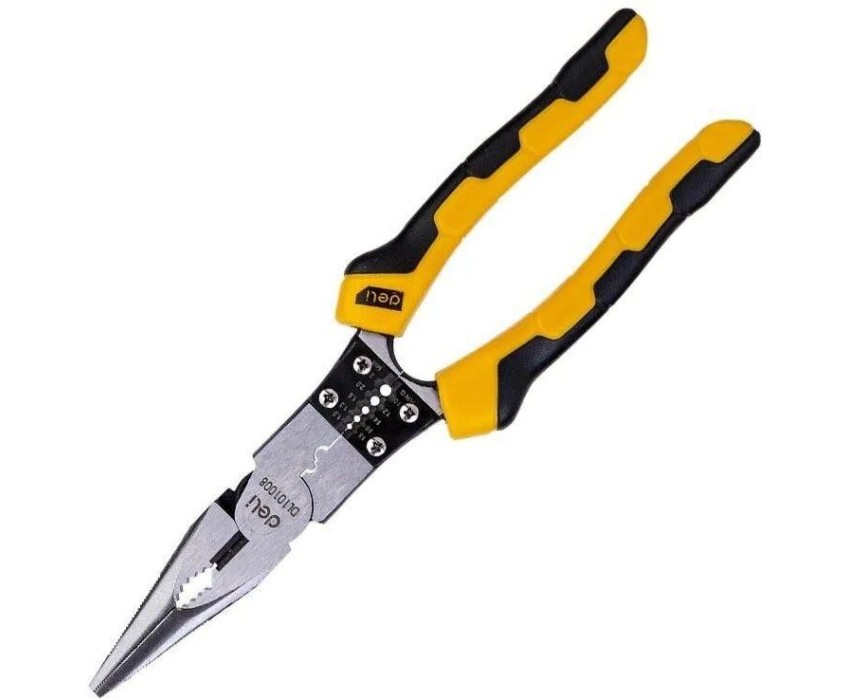 Шарнирно-губцевый инструмент Deli Удлиненные плоскогубцы многофункциональные Deli DL101008 220мм, (зажим/резка/зачистка/обжатие), сталь Cr-V, двухкомпонентная рукоять
