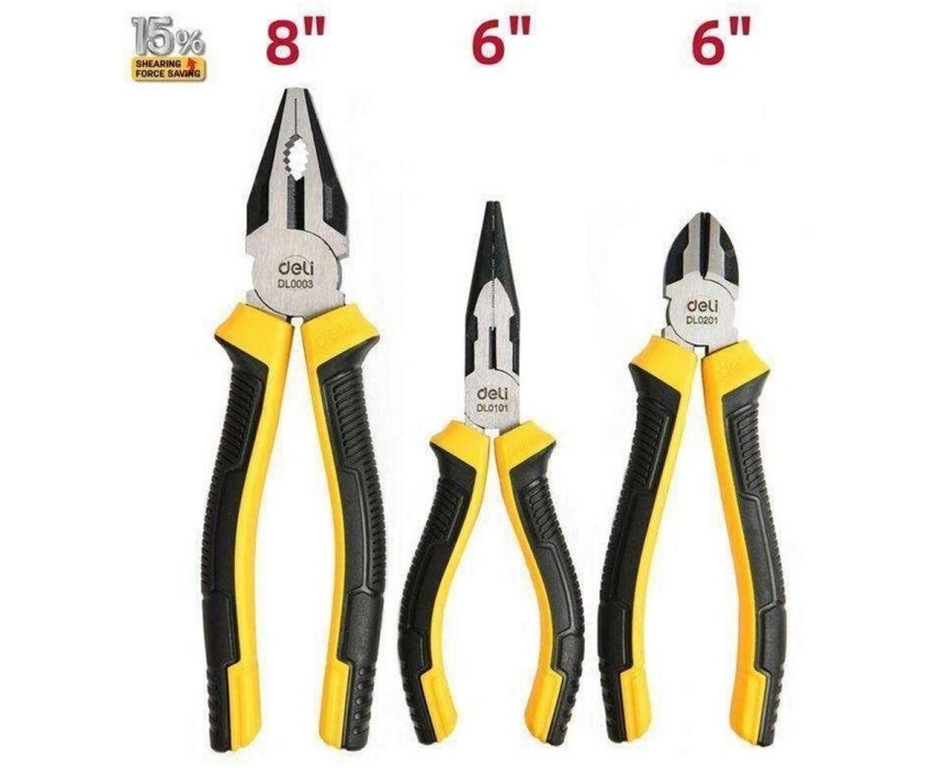 Набор плоскогубцев Deli DL0003-3 (комбинированные плоскогубцы 200мм, удлиненные плоскогубцы 160мм, диагональные бокорезы 160мм, двухкомпонентная прорезиненная рукоять)
