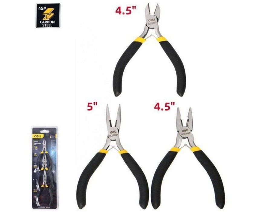 Набор мини-плоскогубцев Deli DL103205-3 (комбинированные плоскогубцы 115мм, удлиненные плоскогубцы 125мм, диагональные бокорезы 110мм, прорезиненная ручка)