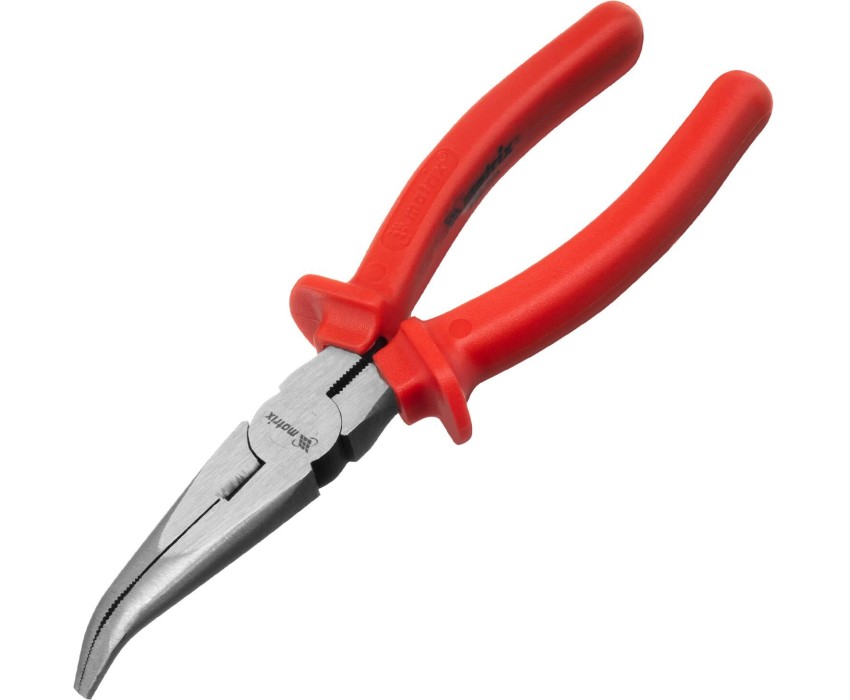 Длинногубцы MATRIX Длинногубцы изогнутые Econom, 200 мм, шлифованные, пластмассовые рукоятки 17496