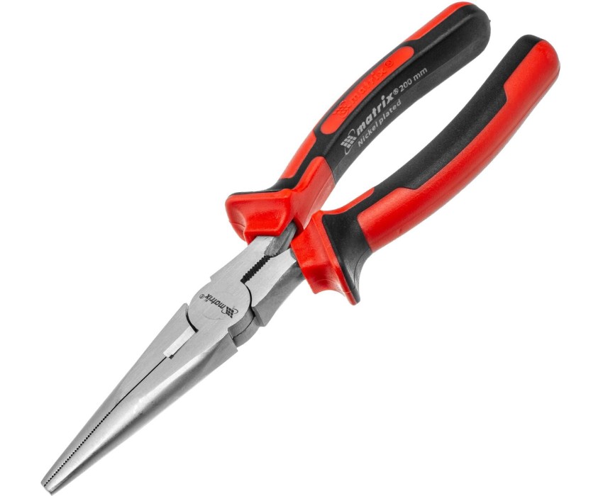 Длинногубцы MATRIX Длинногубцы прямые Nickel, 200 мм, никелированные, двухкомпонентные рукоятки 17168