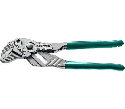Клещи переставные-гаечный ключ KRAFTOOL – профессиональный инструмент с постоянно параллельными губкам. Заменит набор из всех ключей и обеспечит полную сохранность хромированного крепежа. Преимущества Ход захватных губок обеспечивает быстрое затягивание и ослабление винтовых крепежей по принципу трещетки Плавная и быстрая настройка нажатием кнопки Не повреждает грани хромированных деталей, благодаря плотному прилеганию параллельно сводимых захватных губок Уникальная конструкция исключает случайную перестановку и проскальзывание шарнира Подходит для сгибания и сдавливания обрабатываемых деталей Высокая сила зажима благодаря 10-кратному увеличению усилиия на рукоятке. Закалка до 50 HRC Использование Для монтажа и демонтажа крепежных элементов