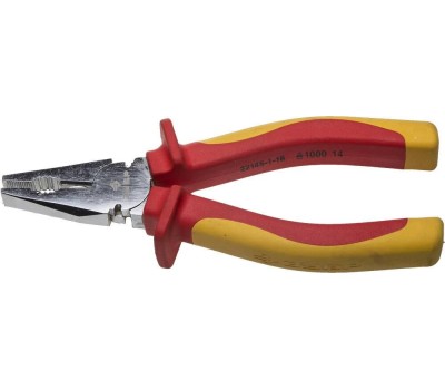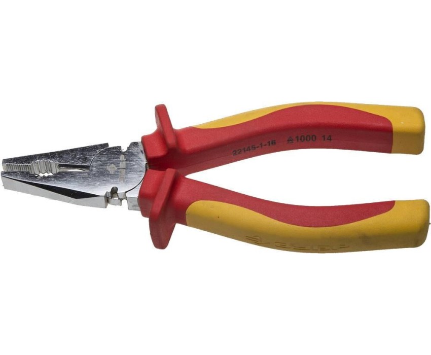 Профессиональные плоскогубцы с защитным хромовым покрытием - надежный инструмент для выполнения электромонтажных работ под напряжением до 1000 В Преимущества Каждая единица продукции прошла тестирование на пробой и допущена к использованию при электромонтажных работах до 1000 В Изготовлены из высококачественной инструментальной стали Поверхность губок и режущие кромки дополнительно закалены токами высокой частоты для увеличения ресурса Оптимальная геометрия рукояток и рабочих граней обеспечивает удобный захват, комфортную и эффективную работу. Хромовое покрытие для защиты от механических повреждений и предотвращения коррозии Двухкомпонентные эргономичные диэлектрические рукоятки имеют защитные выступы Использование Для выполнения слесарных, монтажных и ремонтных работ.