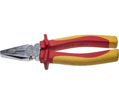 Профессиональные плоскогубцы с защитным хромовым покрытием - надежный инструмент для выполнения электромонтажных работ под напряжением до 1000 В Преимущества Каждая единица продукции прошла тестирование на пробой и допущена к использованию при электромонтажных работах до 1000 В Изготовлены из высококачественной инструментальной стали Поверхность губок и режущие кромки дополнительно закалены токами высокой частоты для увеличения ресурса Оптимальная геометрия рукояток и рабочих граней обеспечивает удобный захват, комфортную и эффективную работу. Хромовое покрытие для защиты от механических повреждений и предотвращения коррозии Двухкомпонентные эргономичные диэлектрические рукоятки имеют защитные выступы Использование Для выполнения слесарных, монтажных и ремонтных работ.