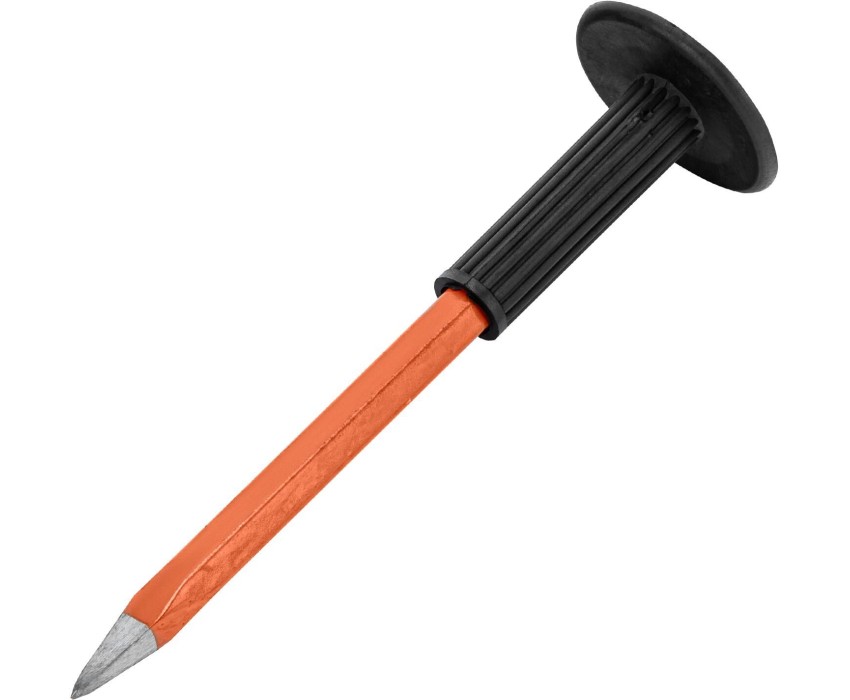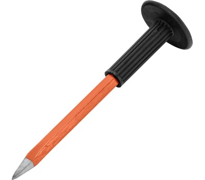 Керн Sparta 188305 длиной 250 мм — ударно-режущий инструмент, применяемый совместно с молотком или киянкой. Предназначен для накернивания кирпича, камня, бетона и цемента, пригодится во время строительных и ремонтных работ. Преимущества Прочность и долговечность — керн выполнен из легированной стали 65Mn. Высокий ресурс — рабочая часть твердостью 52 HRC долго сохраняет остроту. Безопасная эксплуатация — резиновый протектор защищает руку мастера от отдачи и случайного удара молотком или киянкой.
