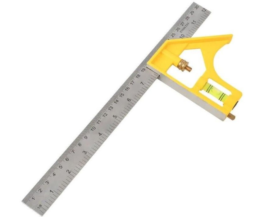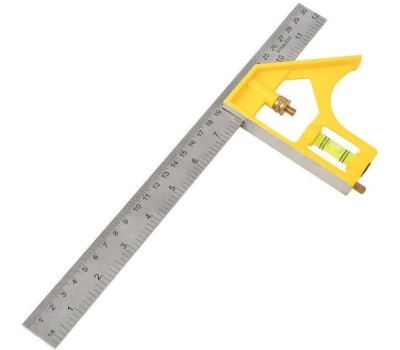 Угольник DELI Линейка строительная с угольником и уровнем DL7300Y 300мм, нержавеющая сталь, пузырьковый уровень