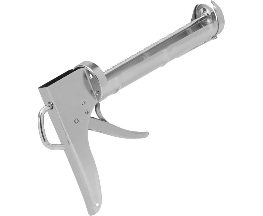 Хромированный пистолет для герметика Matrix 88640 полуоткрытого типа, с зубчатым штоком диаметром 7 мм, предназначен для установки стандартной тубы с клеем или герметиком объемом 310 мл. Зубчатый шток позволяет точно дозировать и аккуратно наносить смесь. Пистолет пригодится строителям, сантехникам и мастерам по ремонту, а также будет полезен в быту. Преимущества Прочность и долговечность — корпус с 3 поперечными ребрами жесткости не перекашивается, хромовое покрытие обеспечивает защиту от коррозии. Простая конструкция — установка или замена тубы занимает несколько секунд. Удобная обрезка насадки картриджа — на корпусе имеется специальное отверстие с заточенными краями. Быстрая очистка насадки от засохших остатков смеси — в комплект поставки входит специальная игла. Малый вес 442 г — работа с инструментом не вызывает ощущение усталости